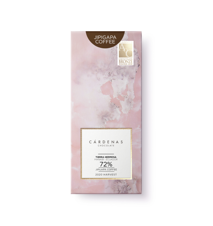 London Academy of Chocolate Award Winner 2020. Deep, opulent and elegant. Tierra Hermosa 72% with speciality coffee from Jipijapa, harvested in Ecuador since 1850. Speciality chocolate which enhances floral, fruity, nutty and caramel nuances of the Arriba Nacional cacao. The perfect way to finish a dinner party with a piece of this chocolate and your favourite red wine or cognac.