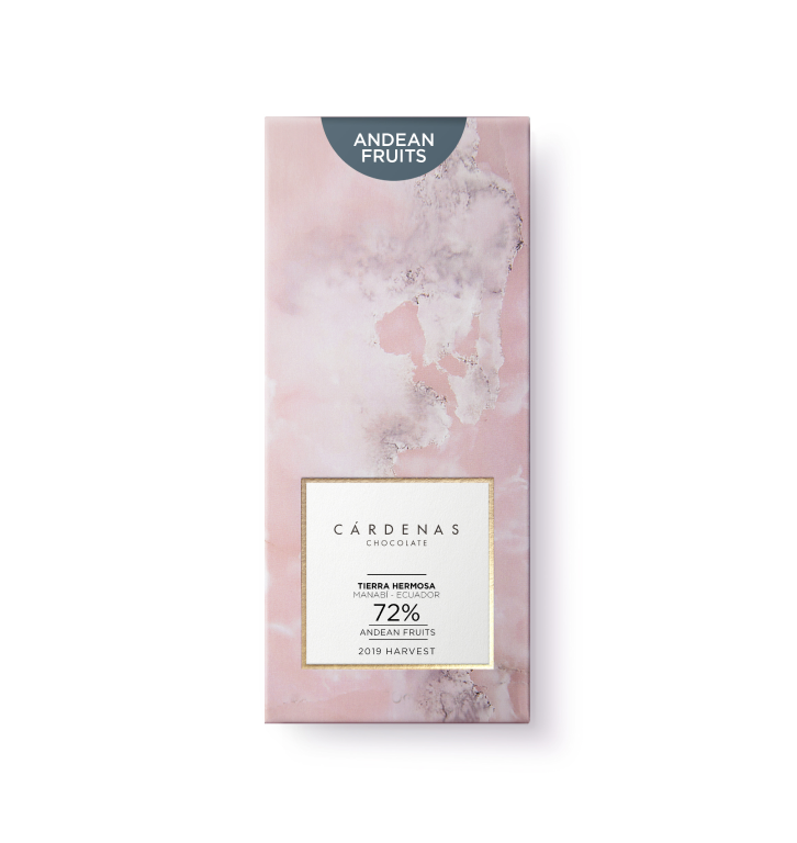 London Academy of Chocolate Award Winner 2021. Decadent and exotic. Blueberries and strawberries harvested in the Andean mountains of Ecuador beautifully combined with Tierra Hermosa 72%. This speciality chocolate enhances floral, fruity, nutty and caramel nuances of the Arriba Nacional cacao. Enjoy the sophisticated flavours of this cacao harvested by a small group of growers from Manabí, Ecuador. An ideal pairing with a delicate cheese and your favourite red wine.